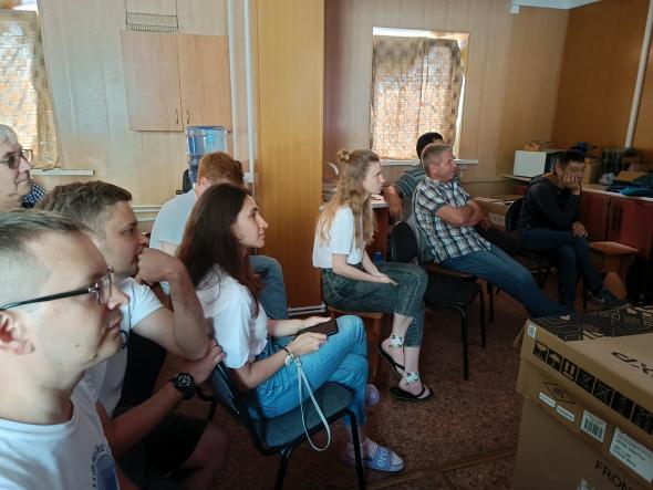 И вот, час настал. К нам приехали наши дорогие друзья из Иркутска: Хлыстов Олег, Хабуев Андрей, Макаров Михаил и Безрукин Андрей. Также, к заседанию присоединился сам капитан НИС «Г.Ю. Верещагин» Бархоков Иван Юрьевич, которому тоже было очень интересно, какие открытия мы совершили в его вахту.